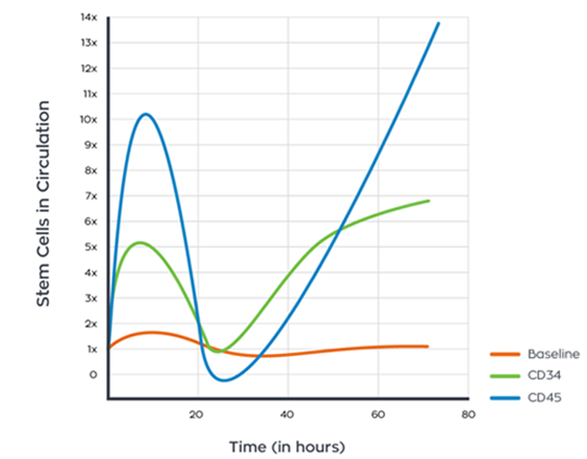 The effects of Stemforte® Plus were tested on human bone marrows, CD34 and CD45, which showed an increase of stem cells.