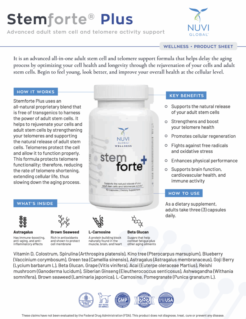 Your journey to the best version of yourself begins here. Feel young, look better, and improve your overall health at a cellular level with Stemforte Plus!